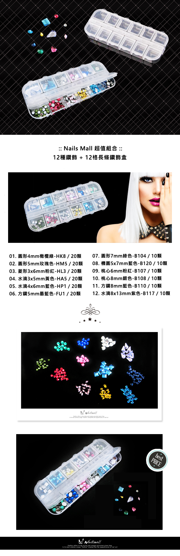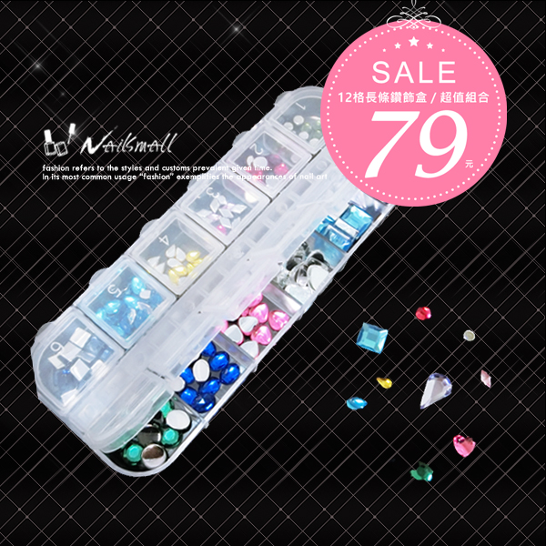 12格長條大鑽盒水鑽12色隨機出款 圓鑽水滴 方型 桃心鑽 凝膠甲鑽飾貼鑽