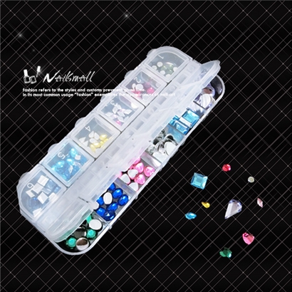 12格長條大鑽盒水鑽12色隨機出款 圓鑽水滴 方型 桃心鑽 凝膠甲鑽飾貼鑽