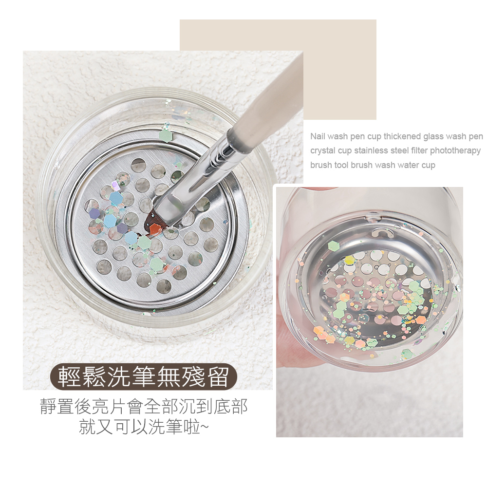 ★密封瓶蓋設計可重複洗筆 ★網眼式濾網輕鬆洗去亮片 ★精緻小巧.洗筆收納一步到位