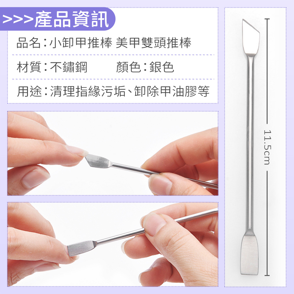 ★清除指甲邊緣污垢 ★卸除甲油.光療膠等 ★雙頭設計 一推多用